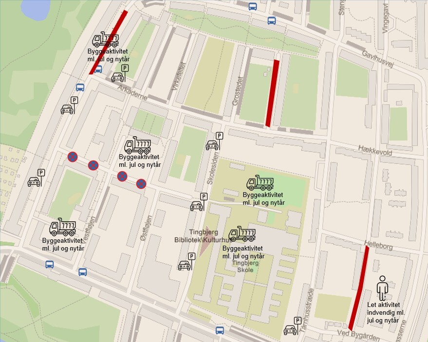 Mellem jul og nytår vil HOFOR arbejde på Langhusvej, ligesom arbejdet på Tingbjerg skole og med de nye institutioner på Vestfløjen, Midtfløjen og bag skolen fortsat vil være i gang.